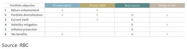 Alternative investments can be used strategically to enhance returns and manage risk: