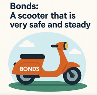 Investing in bonds is like riding a scooter on a smooth path. They do not go too fast, but keep your money moving safely and steadily. When you buy a bond, you’re lending money to a government, company, or organization. In return, they promise to pay you back over time with regular interest payments. At the end of the term, you also get your original investment back (the face value of the bond).