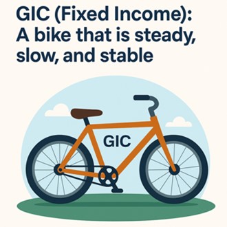 Just like riding a bike on a flat path, cash and GICs tend to move slow and steady, without the dramatic ups and downs of stocks. That makes them a good option for conservative investors or those nearing retirement who want predictable income and lower risk.