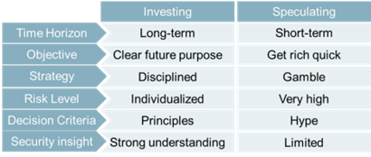 Some out there are finally paying the price for speculating on their investments – look no further than crypto for this type of investment activity. Benjamin Graham states that “an investment operation is one that, after thorough analysis, promises safety of principal and a satisfactory return; all other operations are speculative.” Investing involves holding an asset long term with the purpose of achieving a financial objective such as accumulating wealth during retirement or funding a child’s education. Speculation, on the other hand, is the process of placing bets on very high-risk opportunities with the purpose of achieving exceptional returns.