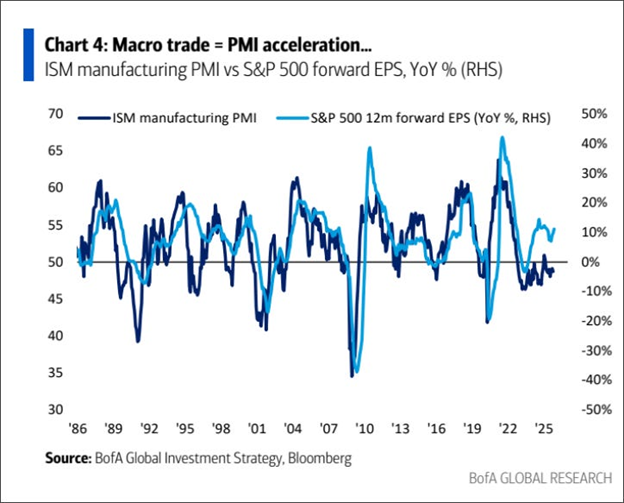 Purchasing Managers are cautious, and when they become more optimistic, stocks usually follow reluctantly. This time, it’s the opposite! Stocks are more excited about the economy than Purchasing Managers: