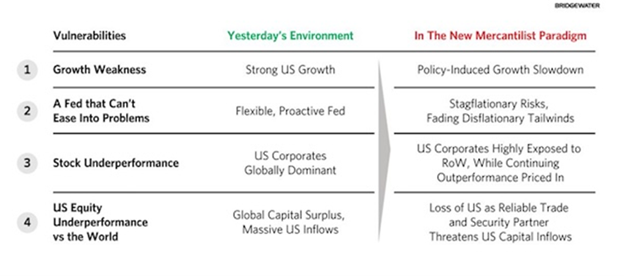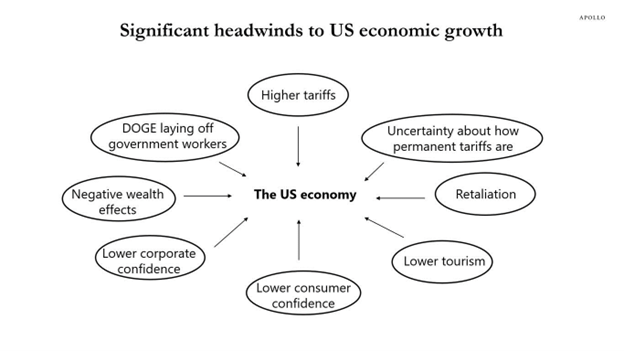 “Shrinking the trade deficit through tariffs exposes the U.S. to a weaker economic picture through lower investment that can force an increase in the savings rate, risking lower consumer spending. Combined with an outsized vulnerability to foreign investment and what may be a handicapped policy response should growth meaningfully slow, downside risks to the U.S. economy are mounting at the same time price pressures are re-accelerating, increasing the risk of a stagflationary environment. Such an economic backdrop typically acts as a headwind for risk assets, specifically equities, all else equal.”