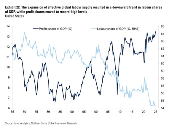 Over the last 25 years, US companies have benefitted from increasing globalization of both trade and capital which enabled secular disinflation and increasing profitability. As Goldman Sachs points out, "US equity valuations are difficult to sustain structurally if there is a trend towards higher inflation and lower corporate profitability," as the result of a shift to deglobalization.