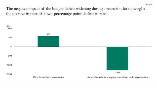 So, if Trump engineers a recession from all of this, even with rates going down, if history is a reference then inducing a recession would likely have a negative impact to the budget. The US is in a sticky situation with this one: