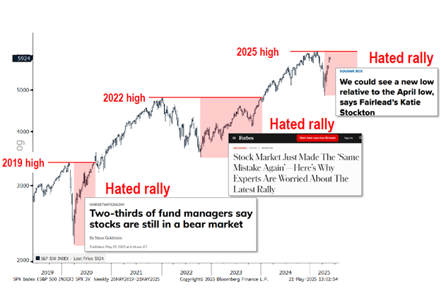 Admittedly, while economic growth has moderated from levels at the start of 2025, it has stabilized over the past few months and, so far, neither tariff threats nor policy uncertainty are causing a material downgrade in economic growth. But we may not have felt the effects of the negative noise out there quite yet either. Economic resilience so far is not an “all clear” on recession risks (even through stocks are acting as though they are).
