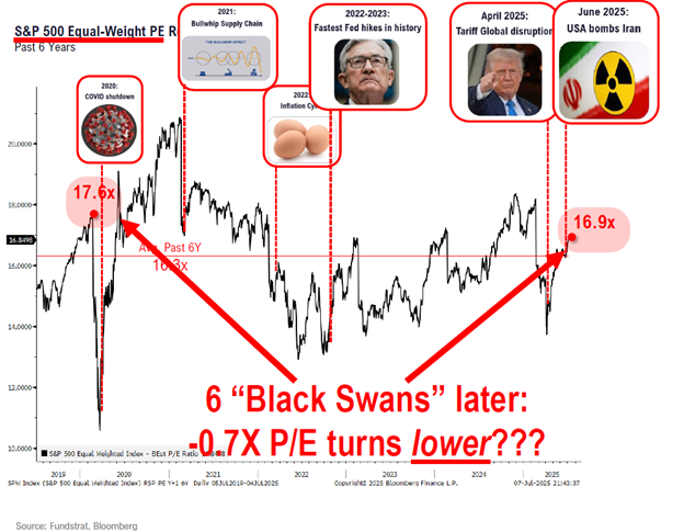 Keeping things in perspective – if we assess the equal-weighted S&P500, we’re cheaper than where we were before COVID even after having endured multiple ‘black swan’ events: