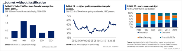 The US markets may be expensive, but there is some justification for this – lower leverage than most periods, higher quality composition, and more ‘asset lite’ than ever before: