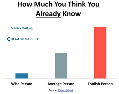 I think true wisdom lies in knowing what you don’t know, and admitting that to yourself. This is why the smartest person in the room is often the one who most frequently says, “I don’t know.” Unfortunately, admitting you don’t know something doesn’t play well on social media or in the news media. But the real wisdom is out there if you look carefully and listen to the right people. And I hope to bring some of that collection to you via my Partner Memos. Humility is the most effective attribute as an investor/advisor in my view.