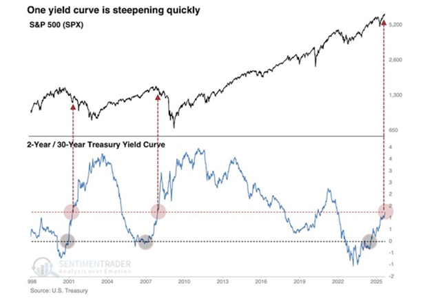 So, for general market risks, we have to watch the bond market for clues. One strategies is fearful and highlights this chart: