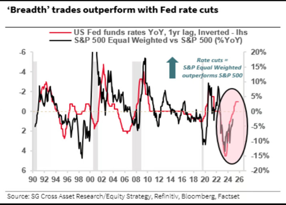 When the Federal Reserve begins cutting rates market breadth dramatically improves: