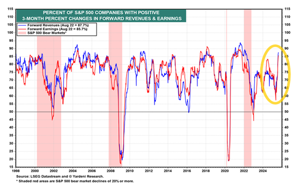 The ability to sustain this improvement must be fundamentally driven. We are now seeing broad-based positive revenue and earnings surprises across the market not just in the MAG7.