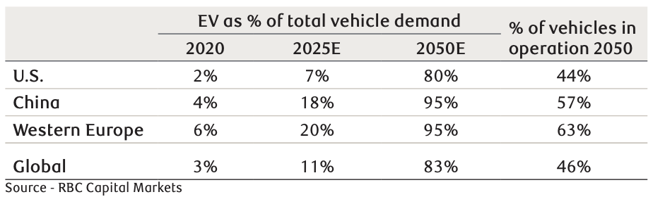 But this appears about to change. RBC Capital Markets, LLC U.S. Auto Analyst Joseph Spak forecasts EVs will represent 11 percent of demand for new cars by 2025, with growth rates of some 40 percent per year, supported by regulations to phase out internal combustion engine vehicles. To date, at least 24 countries have proposed some form of zero-emission vehicle targets. For instance, the UK will ban the sale of new petrol and diesel cars from 2030.