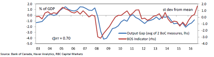 BOS indicator and BoC’s average estimate of the output gap
