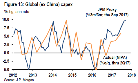 The pickup in business capital spending reflects a strong upturn in the fundamentals. What has been missing was a strong pick up on capital spending by businesses. This measure is closely related to business sentiment and confidence in the current business cycle. A recovery in business spending is in line with what we have observed in the uptick in business and consumer confidence.