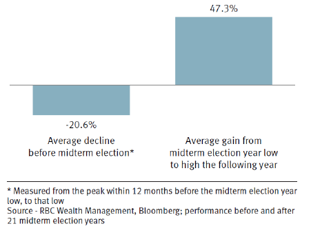 Historically, market performance tend to be weak leading up to mid-term election and outperforms in the following year.