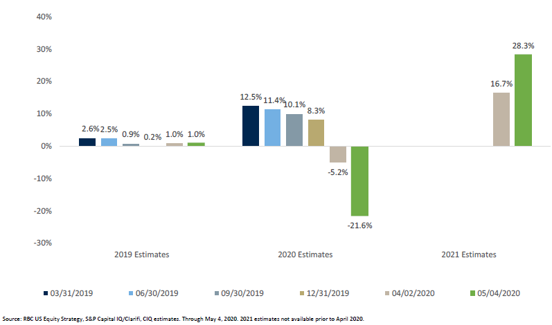 Currently, the earnings for 2020 have been revised down 20% while anticipating a 28% recovery in 2021: