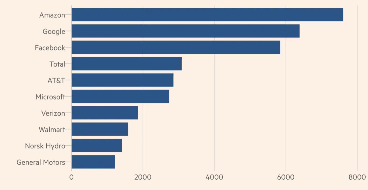 · Demand side changes drive faster adoption of clean energy: tech companies such as Google, Microsoft and Facebook have become the world’s biggest corporate purchasers of clean energy. This is significant because tech companies are big consumers of electricity due to the energy demand from their data centres. The combined electricity consumptions of this tech group can rival a stand-alone country.