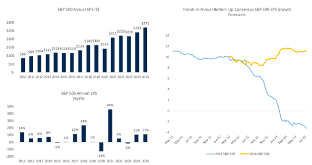The stock markets experienced a significant pull back in 2022 due to the threat of tighter financial conditions and a pending recession. Markets have then subsequently rebounded so far this year on the prospect of a soft landing and earnings recovery in 2024. For stock markets to continue their rally, heathy growth in corporate earnings will be an important part of a bullish outlook.