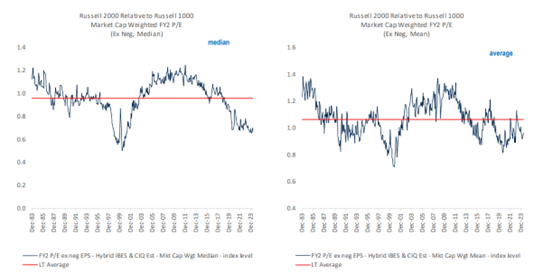 Small Caps Undervalued vs. Large Caps on Both Median and Average P/E Multiples