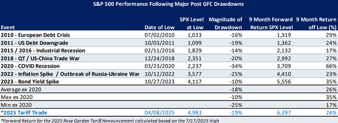 The second Trump term has lived up to the promise of delivering the unexpected. We have seen a 20% drawdown in April given the tariff scare and a subsequent V shaped recovery in under 20 days which make it the 5th fastest recovery in history. The speed of the recovery was unexpected as was the extent of the tariff threats at the initial announcement.