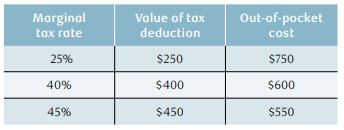 3. Contributions are tax-deductible, like in the RRSP. This means, depending on your tax rate, the “out-of-pocket” cost of a contribution is significantly lower (see below for examples of a $1,000 contribution, courtesy of RBC Wealth Management).