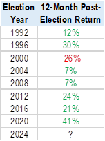 Post-election tailwinds: One of the best periods to be invested in stocks is the twelve months following a US election – regardless of which party wins. After the past 10 elections, the only time when the market declined in the subsequent 12 months was 2000 as the Internet Bubble was bursting). Thus, with only two months since election day, history remains on the side of stocks. Regarding the incoming Donald Trump administration’s philosophies, its focus on deregulation could maintain investor optimism. Another tailwind could come from the soon-to-be-formed Department of Government Efficiency (DOGE). If Elon Musk and Vivek Ramaswamy can overcome the fact that they will not have any formal power, any resulting reduction in federal spending could ease concerns in the bond market about widening government debt levels.