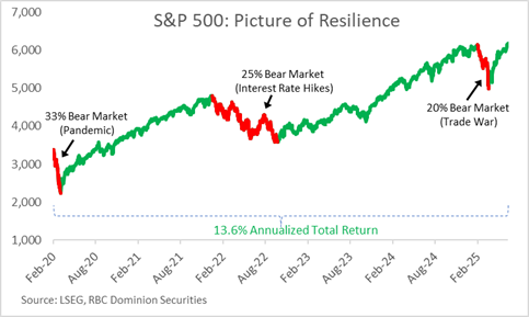Resilience. It is a quality we try to instill in our children at a young age, so they develop the ability to rebound and persevere after setbacks in their life. The Merriam-Webster dictionary defines it as “an ability to recover from or adjust easily to misfortune or change”. If one needs a visualization to better understand that definition, look no further than a chart of the US stock market over the past five-and-a-half years.