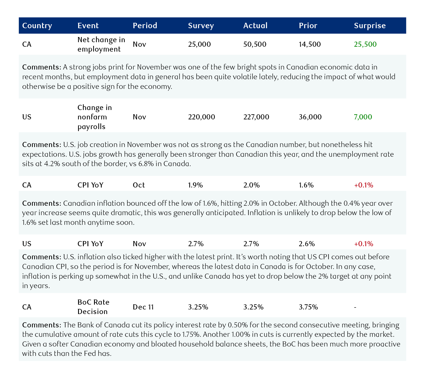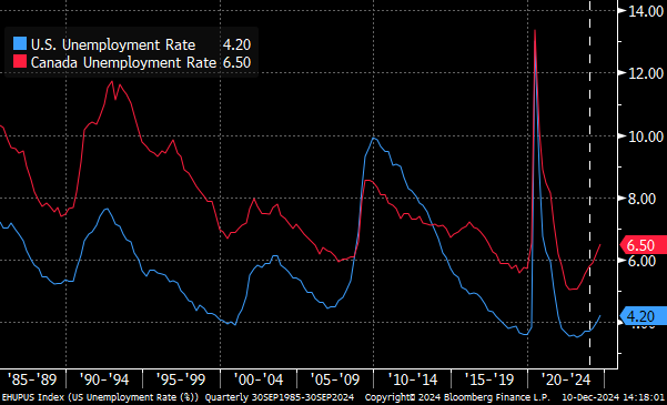 Macro – rising deficits lift all boats: The economy certainly did its part to push markets higher, with employment data softening less than economists expected. It’s true that the unemployment rate ticked higher this year (particularly in Canada) but that figure remains very low relative to historical levels.