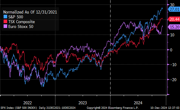 2024 – A Review in Charts. It’s that time of the year again, when airborne illness runs roughshod through our immune systems and the Harder children aggressively inquire as to how many sleeps remain before Christmas. It’s also a time for investors to reflect on the past year and strategize for the next. With that in mind, this edition will be a chart-based review of how markets evolved in 2024, whereas next month we’ll outline our views and positioning for the year ahead (spoiler: we’re growing increasingly cautious).