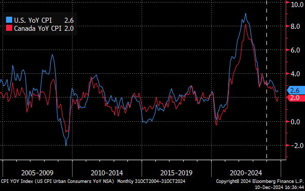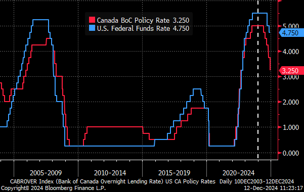 Aside from multi-trillion dollar deficits, there’s something else we don’t typically see when unemployment is low and stocks are hitting record highs: rate cuts. Most rate cutting cycles start as a reaction to a rapidly deteriorating economic picture. This year rate cuts started later than expected, but nonetheless are providing further support to assets and growth. After this week’s Bank of Canada cut, the policy rate has now been reduced by 1.75% cumulatively, with another 1.00% priced in for 2025.