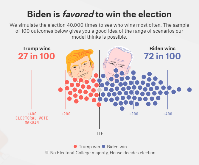 The U.S. election is coming up fast. There’s no sure information, but 538 just posted their election outcome forecast.