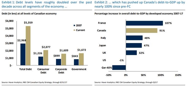 Now, this is fairly manageable in a world in which interest rates remain low and indeed, while the absolute debt levels have risen dramatically, the cost of servicing these debts has barely moved. However, each dollar of debt buys a lot less in terms of growth than it used to and given the high absolute levels of indebtedness, there simply may at some point be a tipping point at which the ability to pile on new debt becomes limited.