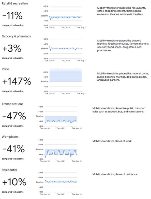 On the topic of what we’re doing during COVID-19, Google has a “Community Mobility Report” that tracks anonymous data on where its phones are moving around to in the world. You can look up the report for any country on Earth. I found the following few stats particularly revealing, and wonder what changes in society will become habits before the pandemic is a memory. Look, for example, how our retail is down -13%, grocery down -3%, but public parks are up a whopping 190% compared to the baseline usage! It plain to see when you’re out these days, and I love the troupes of bikers and walkers out at all hours of the day enjoying the world. I had a series of back-to-back conference calls / Zoom meetings the other day, none of which required me to be at a my office computer. I literally spent the whole day instead walking around the city, and Google would have found my phone in more than a few parks.
