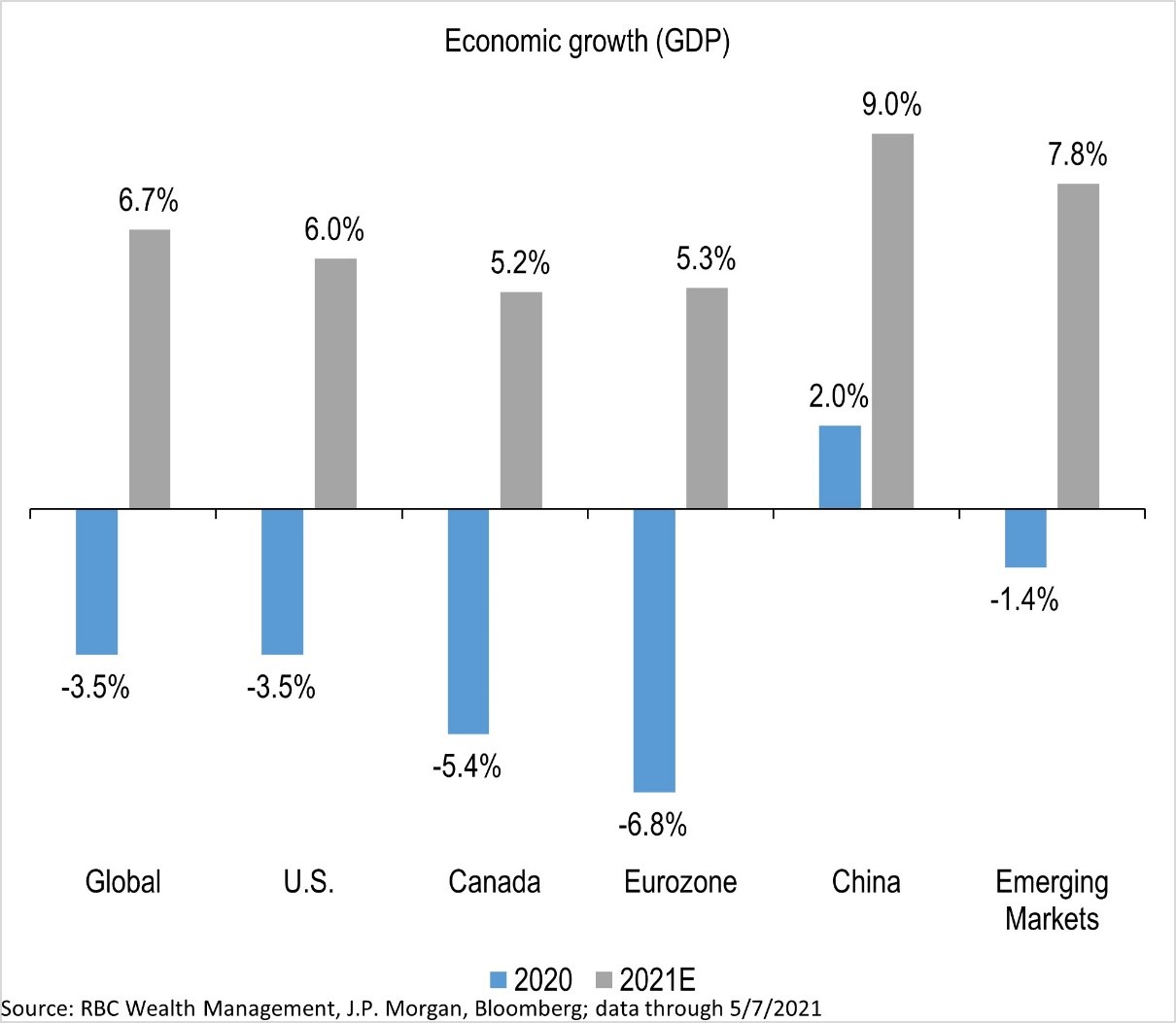 What this misses, of course, is context. 4.2% was well ahead of estimates of what U.S. inflation would be but remember what was going on a year ago—economies around the world had shuttered, stores had sales for everything but toilet paper and baking yeast, and we were finding out what “curbside pickup” was all about. Working off a distorted starting place is called a “base effect,” and we’ll be dealing with the pandemic’s base effects for a little while still. Add onto that some particular supply chain constraints on significant parts of the consumer goods basket—wood, gas, and microchips—and you have the recipe for a bit of extra oomph under the price of things. Then further add to that that global growth is recovering.