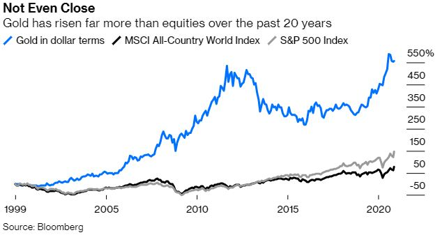 For this century, 2000-2020, Gold as an investment, +555%, has outperformed the MSCI All Country World Index, +199%, and S&P 500, +270% (adjusted for dividends). Going forward, the bet for gold to underperform will be for the governments to run balanced...
