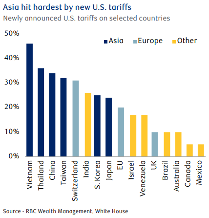 Global equity markets fell more sharply this week following the revelation from the U.S. administration that its reciprocal tariffs will be much broader and larger than most investors expected. The “Liberation Day” announcement raised the spectre of a more global trade war between the U.S. and many, if not all, of its trading partners.