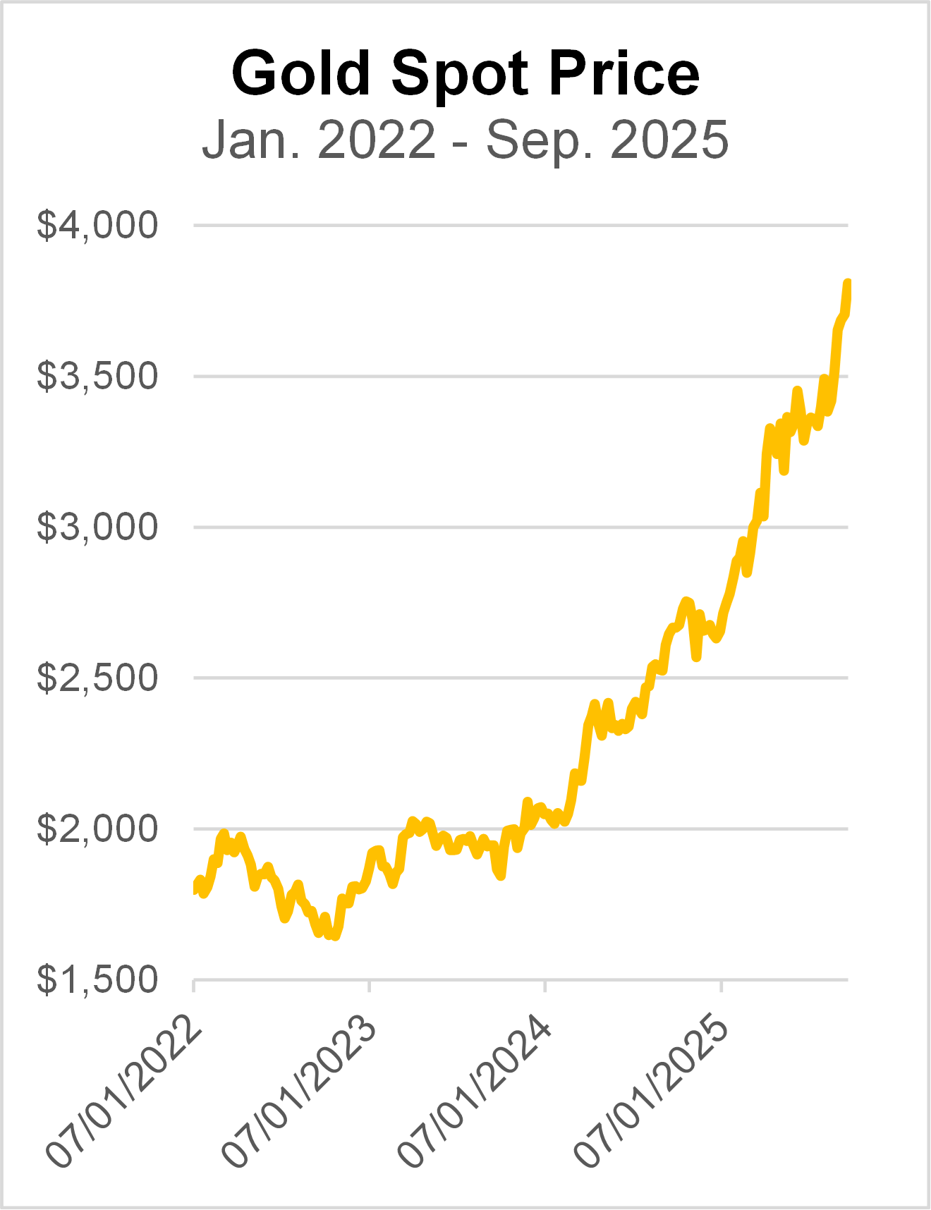 Since the beginning of 2024 the price of gold has soared. It is now edging closer to the $4,000 U.S. per troy ounce level.