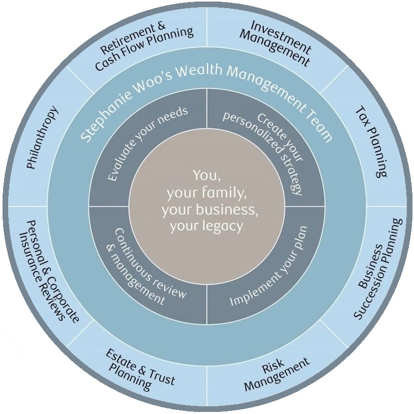 Stephanie Woo and her team are available to be of service to you and your family. Our services go beyond just investing.  No matter if it's a bull market or bear market, we maintain our service offerings and consistency of advice to help our clients enjoy meaning outcomes.