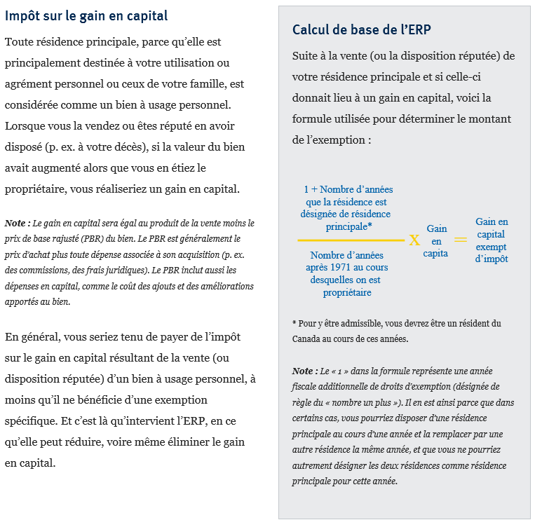 En tant que propriétaire, lorsqu’il s’agit de notre maison ou de notre résidence secondaire, notre état d’esprit se résume souvent à l’acheter, en profiter, l’entretenir (et possiblement la rénover au fil du temps), puis à la vendre ou la transférer à la prochaine génération. Mais ce dont on doit se rappeler c’est que ces biens immobiliers peuvent connaitre une hausse considérable en valeur avec le temps, ce qui pourrait créer un passif fiscal important au moment de leur vente ou transfert. Il pourrait donc s’avérer très utile de comprendre comment fonctionne l’exemption pour résidence principale (ERP), quand elle s’applique et comment y avoir recours de façon efficace, particulièrement lorsqu’on est propriétaire de plus d’un bien immobilier au Canada.