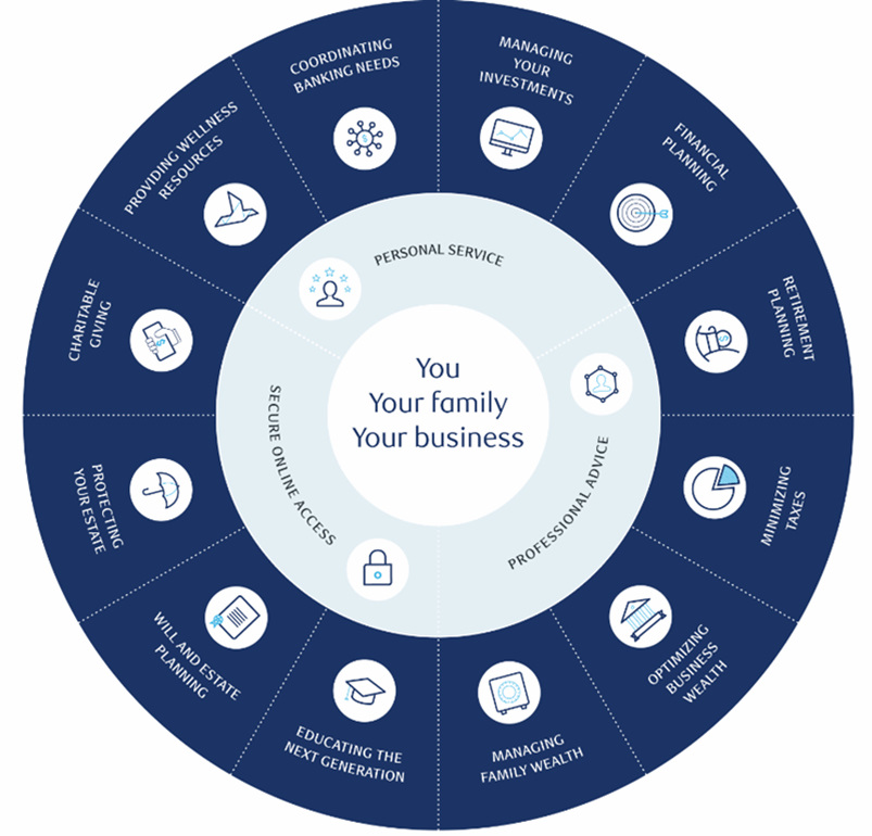 From investment management and tax minimization to business and estate planning, we work shoulder to shoulder with a full team of financial specialists and your other trusted advisors to design your all-encompassing, forward-looking wealth strategy.