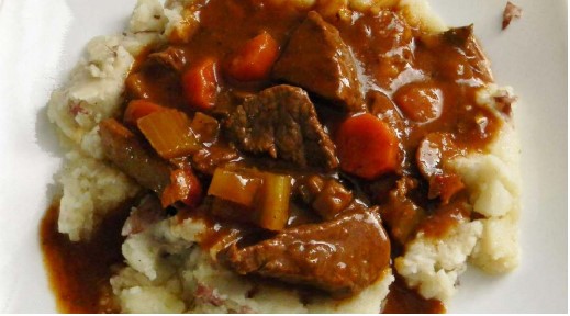 - Arrange mashed potatoes in a ring in a serving bowl; ladle stew into the center of the potatoes.