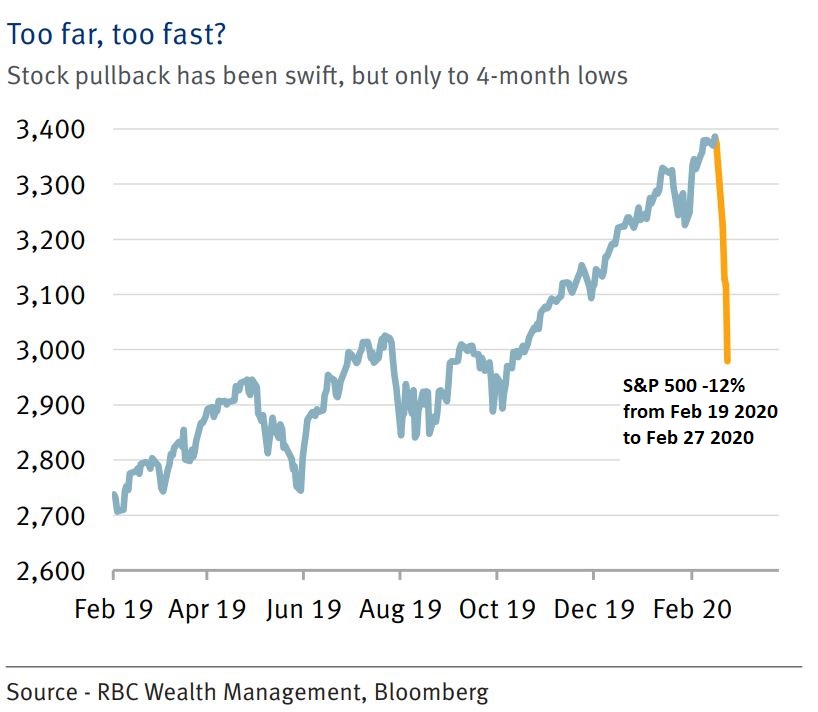 For a little colour commentary, I have included a few highlights from Tomas Garretson's (Senior Portfolio Strategist with RBC Wealth Management) February 27, 2020 update: